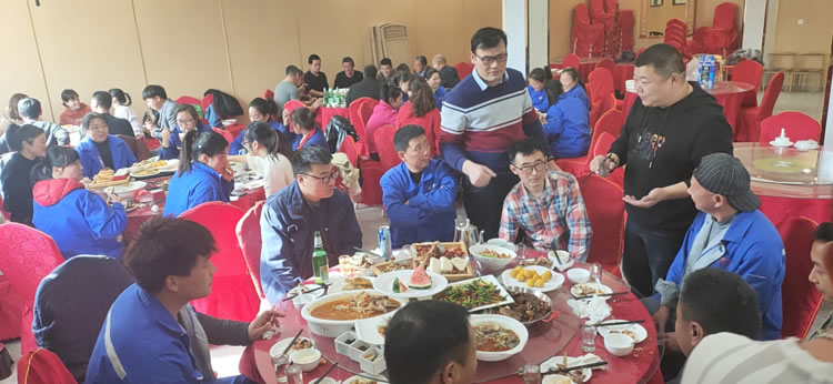 節后復工后,鑫友組織了員工聚餐。考慮到近期疫情防控的需要,聚餐按部門分批進行。規模雖然小了,但現場的氛圍卻依舊熱烈。員工們也都感受到了王總和部門領導們的深深關懷。席間王總肯定了大家去年的辛勤付出,高度贊揚了各部門所取得的成績,同時也對今年提出了新的期望。一番舉杯暢飲之后,大家斗志昂揚,都要2021年大干一場。