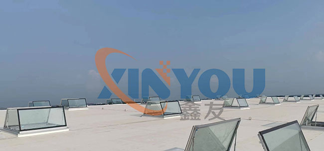 鑫友工業類電動消防排煙天窗主要適用于廠房等工業類大型建筑的屋頂采光、通風、排煙,設計依據建筑標準設計圖集09J621-2。